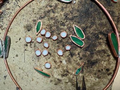 Product details for hanging stained glass mistletoe - you pick black or copper patina.